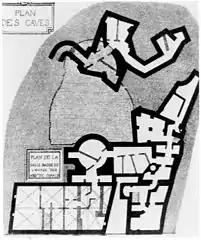 Foundations of the original medieval building with the outline of the completed cour d’honneur.