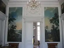 By 1782 the menuisier (chair-maker) Georges Jacob had delivered seat furnishings to the amount of 13,958 livres and Jean-François Leleu, a prominent ébéniste (cabinetmaker), had rendered a bill for veneered case-pieces,[6] but no detailed contemporary description of the interiors survives: Horace Walpole mentioned this "Hôtel de Condé" in passing as an exemplar of the latest French neoclassical taste, after he had his first view of the Prince of Wales's Carlton House, London, in September 1785.[7]
