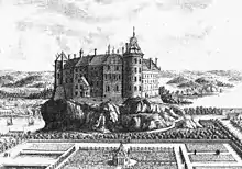 The foundations of the presently visible building, including the basements, date from a castle that was erected on the cliff most probably at the end of the 15th century, when the land was owned by Nils Bosson Sture.[1] The history of the estate, however, goes even further back, although earlier there was no fortification on the site.[2]