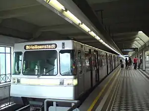 Hütteldorf is a station on U4 of the Vienna U-Bahn.[1] The U-Bahn station is housed within a train shed at the Wien Hütteldorf railway station, which is also served by long distance and regional trains, and by Vienna S-Bahn lines S45, S50 and S60.