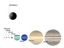 HD 63454 b (also known as Ibirapitá) is an extrasolar planet located approximately 117 light-years away in the constellation of Chamaeleon, orbiting the star HD 63454. It is at least 38% as massive as Jupiter, and orbits very close to its host star, even closer than the famous 51 Pegasi b. Its close orbit means it belongs to a class of exoplanets known as hot Jupiters. This planet has one of the least eccentric orbits. HD 63454 b, now known as "Ibirapitá", was discovered in 2005 by Moutou, Mayor, and Bouchy using the radial velocity method.[1]