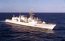 HMCS Calgary is a Halifax-class frigate that has served in the Canadian Forces and Royal Canadian Navy since 1995. Calgary is the sixth vessel in her class and the second vessel to carry the designation HMCS Calgary. She was built as part of the Canadian Patrol Frigate Project. Calgary began the FELEX (Frigate Equipment Life Extension) refit in June 2012. She is assigned to Maritime Forces Pacific (MARPAC) and is homeported at CFB Esquimalt.[3] Calgary serves on MARPAC missions protecting Canada's sovereignty in the Pacific Ocean and enforcing Canadian laws in its territorial sea and exclusive economic zone.