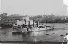 HMS Suffolk was one of 10 Monmouth-class armoured cruisers built for the Royal Navy in the first decade of the 20th century. Upon completion she was assigned to the 3rd Cruiser Squadron of the Mediterranean Fleet and was then assigned to the 5th Cruiser Squadron in the Mediterranean in 1909 after a lengthy refit. She returned home for another refit in 1912 and became the flagship of the 4th Cruiser Squadron on the North America and West Indies Station in 1913.