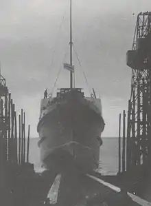 On 17 November 1937, during a storm with associated south-easterly gales, Tynwald sustained damage whilst attempting to berth at Douglas. Earlier that day, her sister Fenella had fouled a mooring rope whilst also attempting to berth at Douglas, which prior to the construction of the Princess Alexandra Pier in 1984, was a notoriously hazardous port due to its exposure during periods of strong easterly wind. Taking that morning's sailing from Liverpool to Douglas, Tynwald experienced great difficulty trying to berth at the King Edward VIII Pier, and suffered damage to the belting on her starboard side, over a distance of approximately five metres, as well as suffering damage to her plating.[2] Finally she secured alongside and having discharged her passengers and mail, Tynwald departed for Liverpool at 15:50hrs taking the passengers and mail which should have left on Fenella's morning sailing, which had been cancelled due to her incident with the mooring rope.[2]