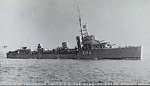 She was propelled by three Yarrow-type water tube boilers powering Parsons geared steam turbines developing 27,000 shaft horsepower (20,000 kW) and driving two screws for a maximum designed speed of 34 knots. She was oil-fired and had a bunkerage of 320 to 370 tons. This gave a range of 3,500 nautical miles at 15 knots.[1]