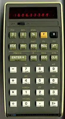 The HP-27 was a hand-held scientific and financial, but not programmable, calculator made by Hewlett-Packard between 1976 and 1978.