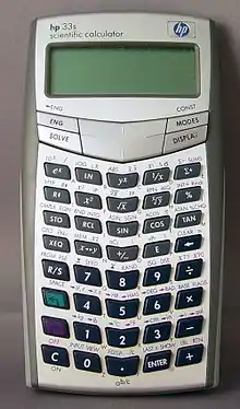 The HP 33s (F2216A) was a scientific calculator marketed by Hewlett-Packard. It was introduced in 2003 as the successor to the HP 32SII,[1] and discontinued on the introduction of its successor the HP 35s in 2007.