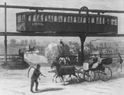 ![]() 1894 painting of the Boynton Bicycle Electric Railroad which served Hagerman | |