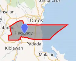 ![]() Map of Davao del Sur with Hagonoy highlighted | |