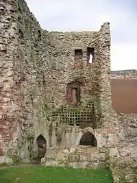 Hailes Castle is a mainly 14th century castle about a mile and a half south-west of East Linton, East Lothian, Scotland. This castle, which has a fine riverside setting, belonged to the Hepburn family during the most important centuries of its existence. Since 1926, it has been the subject of a state-sponsored guardianship agreement, which is now under the auspices of Historic Environment Scotland as a scheduled monument.[1]