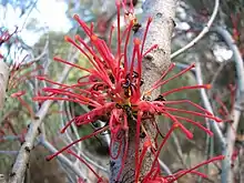 | Hakea orthorrhyncha flower Maranoa Gardens Balwyn, Victoria | |