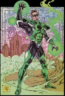 | .png.webp) Hal Jordan as Green Lantern Art by Gil Kane (penciler), Kevin Nowlan (inker), and Matt Hollingsworth (colorist) | |