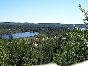 Halfway Lake Provincial Park is a provincial park astride Ontario Highway 144 in Sudbury District in northeastern Ontario, Canada. It is operated by Ontario Parks and is named for Halfway Lake, which is entirely within the park grounds. The nearest settlement on Highway 144 is Cartier, about 25 kilometres (16 mi) to the south. The park contains more than a dozen lakes, including Antrim Lake, Bailey Lake, Benny Lake, Bittern Lake, Burnt Ridge Lake, Halfway Lake, Lodge Lake, Moosemuck Lake, Otter Lake, Raven Lake, Three Island Lake, Trapper Lake, and Two Narrows Lake. There are a mix of 221 electrical and non-electrical sites in the two campgrounds (namely Hawksnest Campground and Wild Rose Campground), 10 interior canoe-access sites located on Antrim Lake, Bailey Lake, and Trapper Lake, plus an additional 5 interior hike-access sites located along the Hawk Ridge Trail.