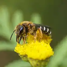 The species exhibits different social behaviors depending on climate: it is a solitary species in high elevations or latitudes where the season is short, but eusocial in other areas. Often, solitary and eusocial colonies appear simultaneously in the same population.[3] These sweat bees are extensively studied for their variability in social behavior, which has become a model for social plasticity.[4][5][3][6] This variability has contributed to an understanding of evolution of social behavior.[3][7][6]