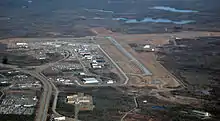 Halifax Regional Police provides policing services.[58][59] Emergency rescue and firefighting services are based in the Combined Services Complex (CSC), which also houses the airport's maintenance operations. The C$24-million, 6,000-square-metre (65,000 sq ft) building opened in 2010, replacing the previous fire hall (built 1981) as well as the former maintenance garage, which opened with the airport in 1960.[60] The complex includes a fire station, vehicular wash and storage bays, offices, conference rooms, staff rooms, sleeping quarters, and an emergency communications centre.[61][62] The CSC was the first LEED certified building at the airport.[63]