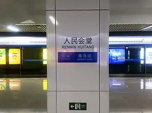 Hall of the People (Chinese: 人民会堂) is a station on Line 3 of the Qingdao Metro. It opened on 18 December 2016.[1][2]