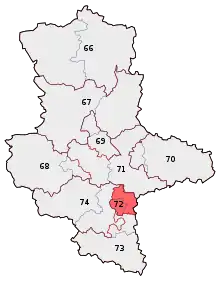 Halle is an electoral constituency (German: Wahlkreis) represented in the Bundestag. It elects one member via first-past-the-post voting. Under the current constituency numbering system, it is designated as constituency 72. It is located in southern Saxony-Anhalt, comprising the city of Halle (Saale) and part of the Saalekreis district.[1]