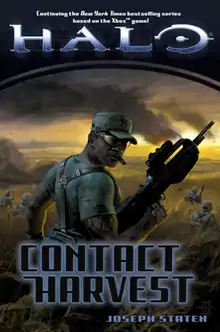 Halo: Contact Harvest is a military science fiction novel by Joseph Staten. Released in October 2007, it is the fifth novel based on the Halo video game franchise. Staten was a longtime employee of Bungie, the developer of the Halo video game series; he directed the cut scenes in the video games and is a major contributor to Halo's storyline. He set out to write a novel that appealed to gamers, as well as those who had never read a Halo novel.