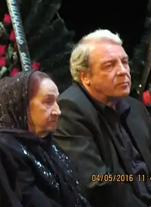 ![]() Halyna Hnatyuk with her son Andriy at the funeral of her husband Dmytro | |