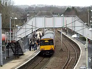 Following a major recast of the Argyle Line timetable in the wake of the electrification of the Whifflet Line, the service pattern from this station has altered significantly. There are still two trains per hour each to Motherwell and Larkhall, but one of the former now runs to Cumbernauld via Whifflet rather than Lanark. Glasgow-bound services meanwhile now call at all stations to Central Low Level and then proceed to Dalmuir via Clydebank or to Milngavie.[3] On Sundays, there is a train every half-hour each way to Motherwell and Milngavie and an hourly service each way on the Larkhall to Balloch route.