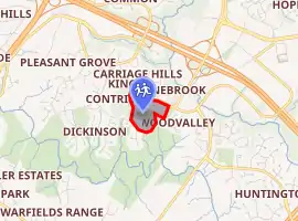 Howard County experienced rapid population growth during the 1960s, and by the early 1970s schools in the southern part of the county were seriously overcrowded. In September 1971 Hammond Elementary-Middle School opened in Hammond Village, a large residential development near Gorman Road. The construction of a new high school that would serve the area was also a top priority for the County Board of Education, and the planned school was frequently referred to as the "Hammond Area High School."[4] (Hammond Village derives its name from Hammond Branch, a tributary of the Little Patuxent River that flows through it.[5] The name Hammond Branch, in turn, dates back at least to 1725). Nevertheless, because of projected future development, the location chosen in 1973 for the high school was not in Hammond Village, but was on Guilford Road in the then planned Village of Kings Contrivance.