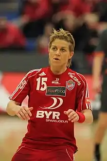 Hanna Guðrún Stéfansdóttir (born 11 February 1979) is an Icelandic team handball player for Stjarnan of the Úrvalsdeild kvenna. She has won the Icelandic championship five times[2] and the Icelandic Cup six times.[3] She has been selected the Úrvalsdeild Player of the Year three times and led the league in scoring in 2003, 2005 and 2009.[3] Hanna has participated in three major international tournaments with the Icelandic national team and is second all-time in both games and goals scored for the team with 458 goals in 142 games.[3]