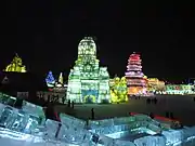 The Harbin International Ice and Snow festival (Chinese: 哈尔滨国际冰雪节; pinyin: Hā'ěrbīn Guójì Bīngxuě Jié) is an annual winter festival that takes place with a theme in Harbin, Heilongjiang, China, and now is the largest ice and snow festival in the world. At first participants in the festival were mainly Chinese, however it has since become an international festival and competition, with the 2018 festival attracting 18 million visitors and generating 28.7 billion yuan ($4.4 billion) of revenue.[1] The festival includes the world's biggest ice sculptures.[2]