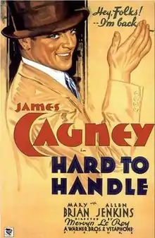 Hard to Handle (1933) is a pre-Code comedy film starring James Cagney as a breezily clowning con artist who organizes a Depression-era dance marathon. His character remarks at one point, "The mass is a cow. It must be milked". The movie was produced at Warner Bros. and directed by Mervyn LeRoy.