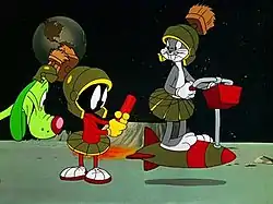 Haredevil Hare is a 1948 Looney Tunes cartoon directed by Chuck Jones.[1] It stars Bugs Bunny and it is the debut for Marvin the Martian — although he is unnamed in this film—along with his Martian dog, K-9.[2] Marvin's nasal voice for this first film is different from the later one he is most known for.This is also the last pre August 1948 Looney Tunes and Merrie Melodies cartoon that was sold to Associated Artists Productions