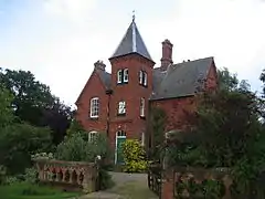 Haseley Manor, a Grade II-listed country house,[2] which was formerly the staff college for the British Motor Corporation and its nationalised successor British Leyland,[3] is now converted for use as private residences.[4] The parish church, St Mary's, is medieval in origin, and revealed evidence of its original decoration during restoration work some years ago. Haseley's fifteen minutes of fame came in 1588. At the time a non-conformist publication was enraging the bishops of the Church of England and was the talk of England. To avoid detection the printing press had to move around periodically and it came to the village that year, as one of the writers was the nephew of the lord of the manor. However it was discovered there and the head of the movement, John Penry, was later hanged.