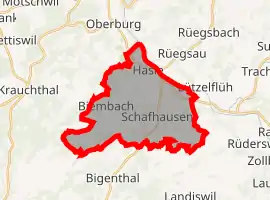 The settlements Uetigen (Utingun), Gomerkinden (Comirichingun), Bigel (Pigiluna) and further hamlets were first mentioned as soon as 894 in a bestowment to the Abbey of St. Gall. Hasel, however, was only mentioned in 1225 as Hasela.[4] The village has since been called Hasle (1261), Hassly (1531), and Hassle (1574). The name can be traced back to the Old High German word hasal, meaning hazel bush.