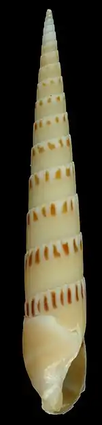 | Shell of Hastula puella (specimen at MNHN, Paris) | |