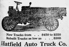 - "Planning To Build Auto Delivery Cars, The Hatfield Company Being Organized Here". The Marion Star. Marion, Ohio. 1909-11-10. Retrieved 2020-05-05.