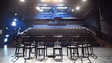 In 1992, the Senate of Berlin withdrew funding from the Theater der Freien Volksbühne, and in 1999 it was sold to an investor. In 2000, the theatre was rented by the federal government and made available to the Berliner Festspiele. In April 2001, it was reopened as the Haus der Berliner Festspiele and played host to events at various festivals throughout the year.[4] The house, with a capacity of well over 1,000 seats (Main Stage: 999, Side Stage: 280, Upper Foyer: 200, Rehearsal Stage: 100, Box Office Hall: 200), has remained almost unchanged to this day and is a listed building. Since its construction, the Berliner Festspiele has regularly used it for the Berliner Theatertreffen and international guest performances. As a festival and event venue, it presents international artists from all fields throughout the year, for example international authors every September as part of the Berlin International Literature Festival.[5]