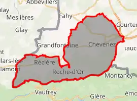 | Surrounded by | Grandfontaine, Rocourt, Fahy, Bure, Courtedoux, Bressaucourt, Vaufrey (F), Montjoie-le-Château (F), Villars-lès-Blamont (F), Dannemarie (F), Montancy (F), Glère(F) |