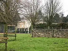 It is built of coursed sandstone, part rendered, and ashlar, with Welsh slate roofs. The main range is a 17th-century, 3-storey block with a 5-bay frontage, flanked by 18th century 2-storey wings.[1]