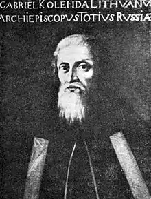 Yuri Havryil Kolenda (Ukrainian: Юрі Гавриїл Коленда, Belarusian: Гаўрыла Календа, Polish: Gabriel Kolenda) (1606—1674) was the Administrator of Kiev–Galicia from 1655 and Metropolitan of Kiev, Galicia and Russia of the Ukrainian Greek Catholic Church from 1665 to his death in 1674.