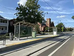 Hawthorne & 8th is a streetcar station in Charlotte, North Carolina. The at-grade island platform on Hawthorne Lane is a stop along the CityLynx Gold Line, serving the Elizabeth neighborhood.