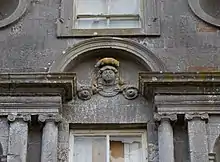 It consists of a 5-bay by 3-bay main block in three storeys with 2-storey wings on either side connected to the main block by single-storey quadrants. The building is constructed of limestone ashlar with slate roofs.[3]