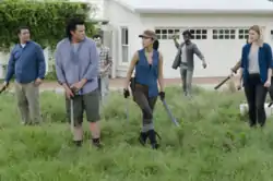 In the distance, they spot balloons rising above the walls, and Maggie realizes it is a sign from Glenn. Just then, the old church tower, which had been shown deteriorating throughout the episode, topples onto the wall segment that Rick and Tobin were trying to reinforce, crashing through it and allowing walkers to flood into Alexandria.