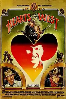 Hearts of the West, released in Europe as Hollywood Cowboy, is a 1975 American comedy film directed by Howard Zieff, released by Metro-Goldwyn-Mayer and starring Jeff Bridges, Andy Griffith, Blythe Danner, and Alan Arkin. Set in 1930s Hollywood, the story revolves around a wannabe Western writer who finds himself cast as a leading man in several B-movie Westerns.