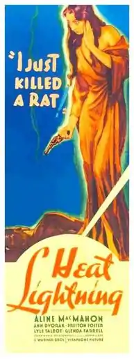 Heat Lightning is a 1934 Pre-Code drama film starring Aline MacMahon, Ann Dvorak, and Preston Foster. It is based on the play of the same name by Leon Abrams and George Abbott.
