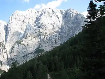 The Heathen Maiden (Slovene: Ajdovska deklica) is a rock formation that resembles a human face. It can be seen in the northern face of Mount Prisojnik near Kranjska Gora, in the Julian Alps in northwestern Slovenia. It is associated with a legend about a chamois known as Goldenhorn and a nymph (vila) dwelling in the mountain.