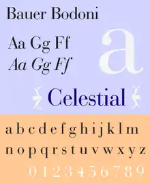 In 1923 Jost was invited by Georg Hartmann[2] to become the art director of the Bauer Type Foundry in Frankfurt am Main.[1] He directed Bauer during its most successful period, until 1948.[3] At Bauer, he oversaw the work of designers such as Paul Renner, Lucian Bernhard and Imre Reiner.[4] Jost personally designed several typefaces for Bauer: Atrax (1926), Bauer Bodoni (1926), and Beton (c. 1931–1936). He also designed Jost Mediaeval for Ludwig & Mayer (1927–1929) and a revival of Fraktur for Monotype (1938).[2] Beton was popular among advertisers, while Bauer Bodoni, which was created as a rival to Morris Fuller Benton's ATF Bodoni, is generally regarded by typographers as the most faithful revival of Giambattista Bodoni's original typeface.[2][3] His other designs include Aeterna (1927) and Georg Hartmann Antiqua (1948).[3]