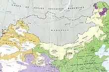 The Helan Mountains, frequently called Alashan Mountains in older sources, are an isolated desert mountain range forming the border of Inner Mongolia's Alxa League and Ningxia. They run north-south parallel to the north-flowing Yellow River in the Ordos Loop section. The river is mostly east of the mountains, but in the north it crosses without making a significant gorge and flows on the west side. To the west lies the extremely arid Tengger Desert, while to the east is an irrigated area beside the Yellow River, in which lie the cities of Yinchuan and Shizuishan - a little further east of which lies the Mu Us portion of the Ordos Desert. To the north lies the Inner Mongolian city of Wuhai.