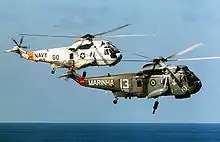 Helicopter Anti-Submarine Squadron 9 (HS-9) was the designation of two helicopter antisubmarine warfare squadrons of the United States Navy. The first squadron bearing the designation HS-9 was established on 1 June 1956 at Naval Air Station Quonset Point, Rhode Island with five HSS-1N “Seabat” helicopters. The squadron was disestablished on 1 October 1968. Eight years later, a new squadron was established on 4 June 1976; it was also designated HS-9. It deployed eight Sikorsky SH-3H “Sea Kings”. That squadron was disestablished on 30 April 1993.