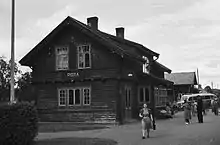 At the time of construction, the railways provided a leap in transport for the communities it passed through. NSB saw beautiful and grand stations as a way to draw patronage, and chose, in addition to impressive architecture, to build a park adjacent each stations.[86] As construction went by, funding for stations were reduced, resulting in less grandeur further north. Most stations had two stories and an attic, although some of the stations serving lesser places had smaller buildings. From Steinkjer to Skogn, the ground floors were built in random rubble. As construction continued, budgets were reduced and station costs were cut. From Rinnan to Sparbu, the ground floors were instead built in brick, and from Mære and north, the stations have wooden ground floors. In addition to a station buildings, stations consisted of an outhouse and a freight house; selected stations also featured a water tower and motive power depot.[85]