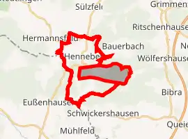 Henneberg is a village and a former municipality in the district Schmalkalden-Meiningen, in Thuringia, Germany. Since 1 January 2019, it is part of the town Meiningen. It was the origin of the medieval House of Henneberg.