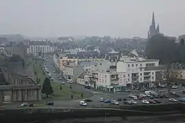 Hennebont is situated about ten miles from the mouth of the River Blavet, which divides it into two parts: the Ville Close, the medieval walled town, and the 17th century Ville Neuve on the left bank and the oldest site: the Vieille Ville on the right.[4] The old walled town (Ville Close) still has traces of its medieval ramparts dating from the 13th to 15th centuries as well as a large fortified 15th century gatehouse complete with double-doors with drawbridge slots, known as the Porte du Broërec.