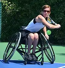 Henriett Koósz (born 14 February 1980 in Kőszeg) is an Austrian wheelchair tennis player.[1] As a member of the Austrian Paralympic wheelchair tennis team, she competed at the 2012 Paralympics in London.[2][3] In 2016, she represented Austria in para-badminton at the Austrian Open.[4][5] In 2013, she was awarded the MiA award by the Austrian Federal Sports Organisation.[6]